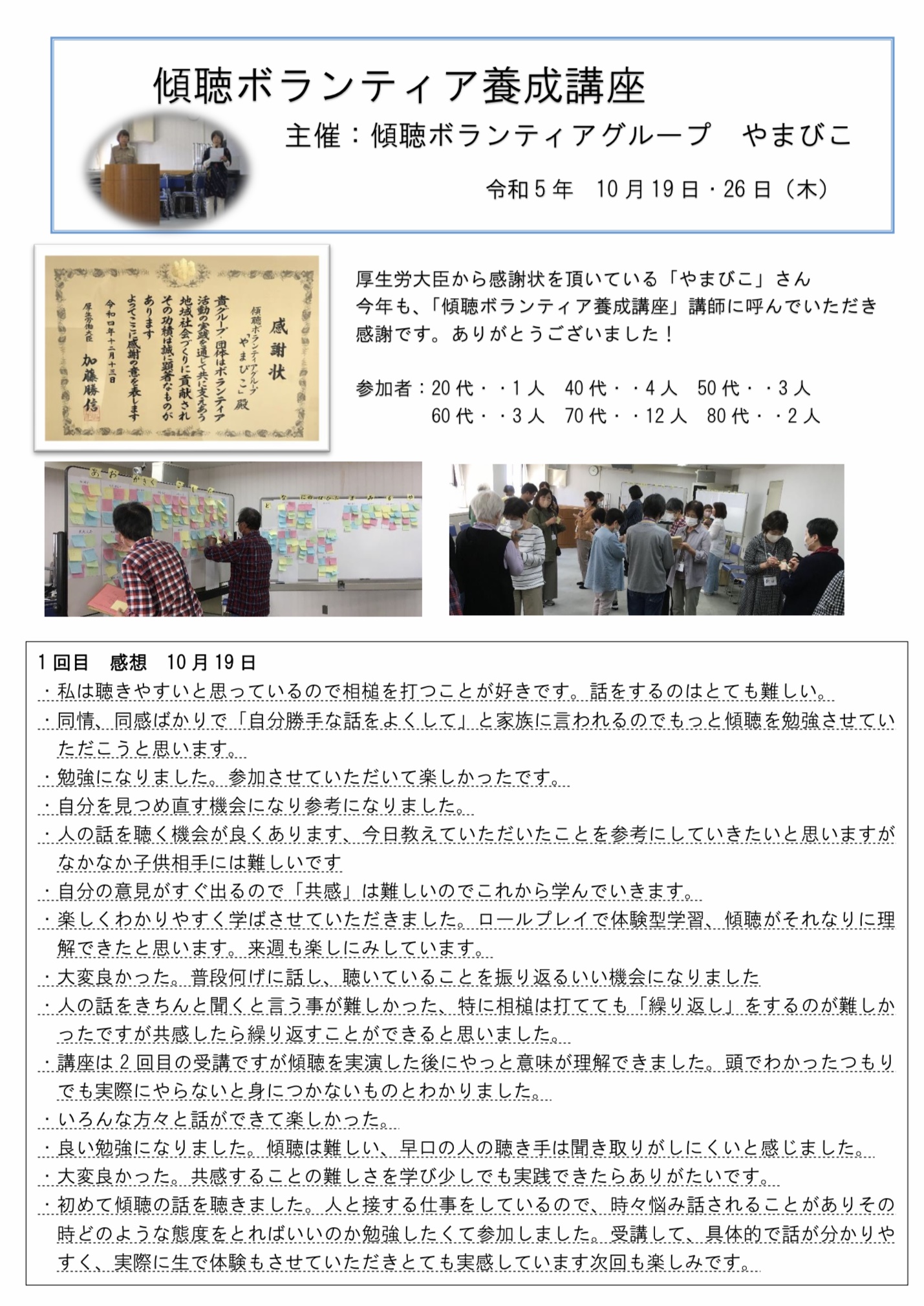藤井寺市傾聴ボランティアグループ やまびこ 主催