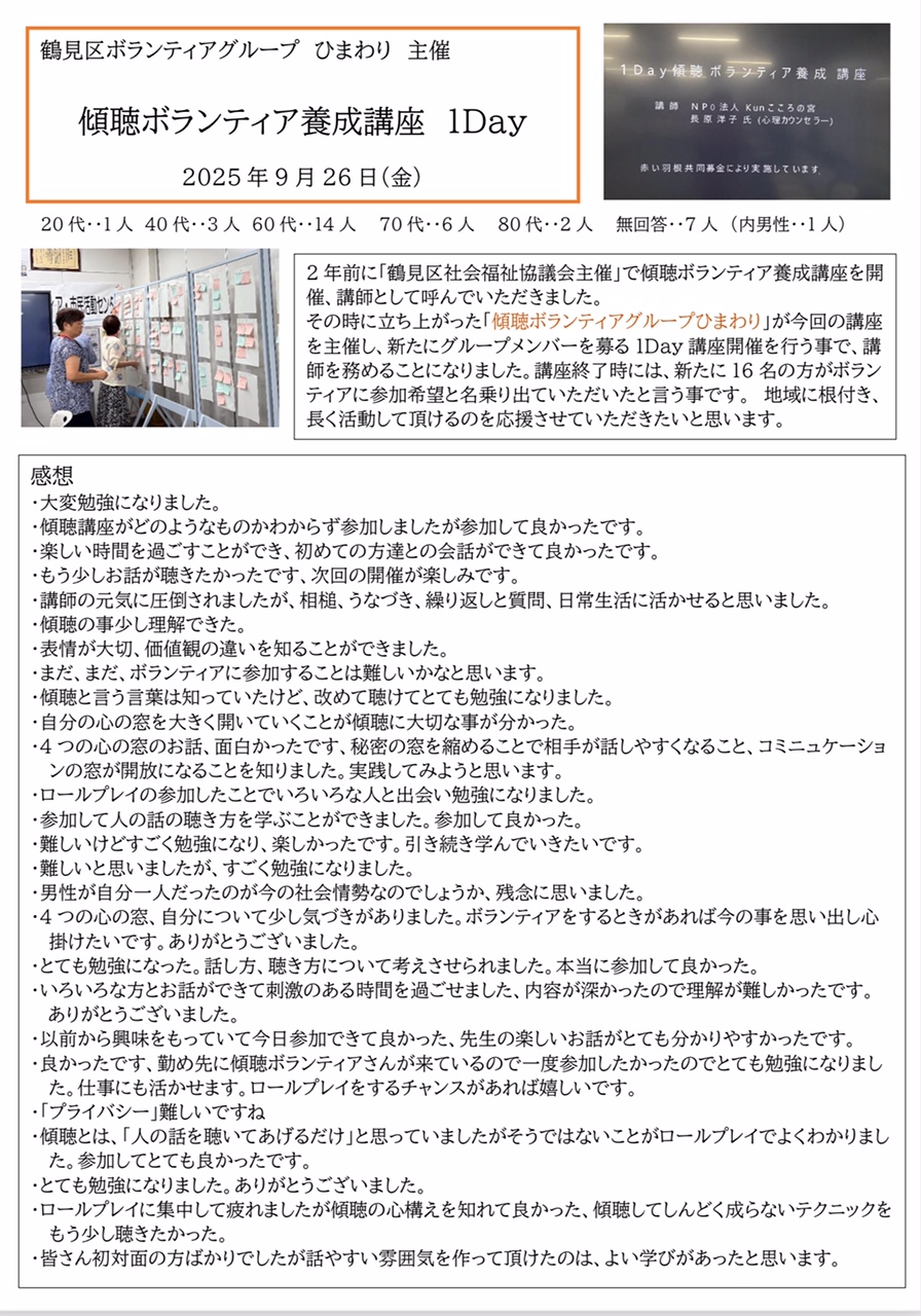 鶴見区傾聴ボランティアグループ ひまわり 主催