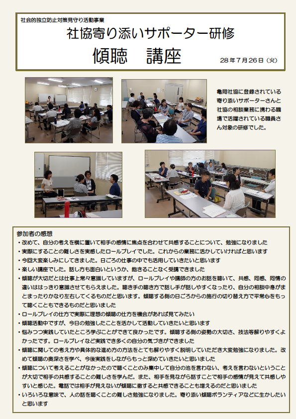 亀岡市社会福祉協議会主催 社会的独立防止対策見守り活動事業 傾聴講座 開催