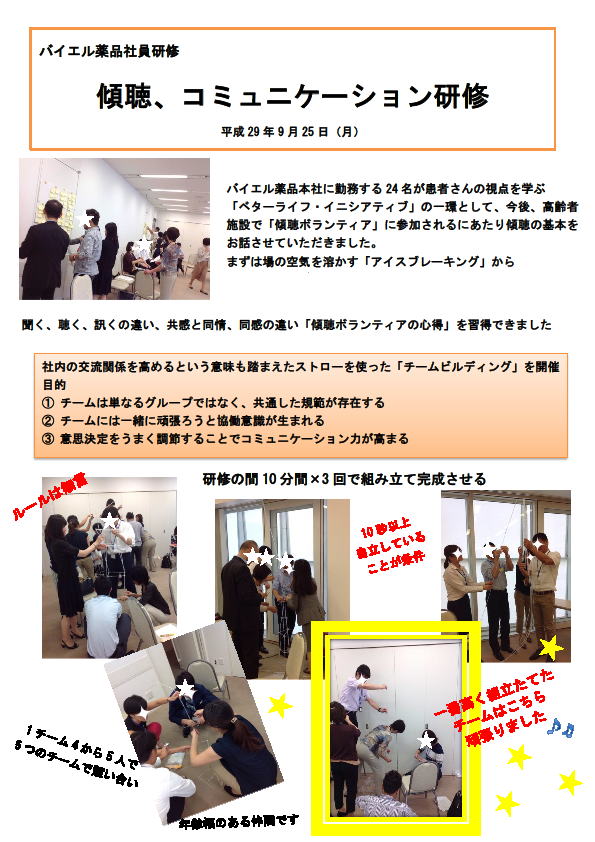バイエル薬品社員研修 傾聴・コミュニケーション講座 開催