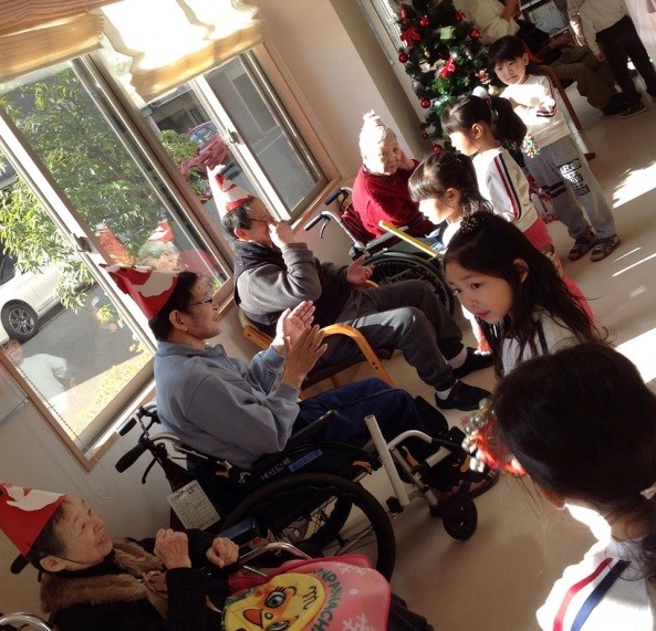 | 保育園 幼稚園園児の課外活動として 高齢者施設を訪問し、施設利用者と楽しい時間を共有していただける高齢者施設、保育園、幼稚園を募集しています 核家族化が進む現代社会では、こどもたちは高齢者と交流をもつ機会が少なくなっています。その一方で、生きがいを失いつつある高齢者。 この両者がくっつけば、お互いが支えあう活力のある地域社会が形成できるのではないでしょうか。 高齢者施設が「隔離」ではなく世代間の「交流」の場になるようなプロジェクトです。 保育園児・幼稚園児と高齢者施設の利用者の交流が目的です。相互が、日常では得られない人間関係を構築し、また普段得られない知識を得、経験をする。 競争社会の激化の中、現代教育は、他人をおもいやることよりも「より多くの知識を身に付け人に勝つことを競い合う場になりつつある高齢者との交流教育が「競育」から 高齢者と共に育つ「共育」への転換を目的とし、高齢者施設を訪問することで高齢者は子供たちと会う楽しみ 生きがい、励みにし、こども達は、おじいちゃんおばあちゃんに 会う楽しみを持ち、おもいやりの心を養うことができます。 地域の高齢者施設を訪問し、施設利用者と一緒に楽しむ時間や 関わりをもつことでこども達に温かい‘こころ’気持ちを味わってもらう。 また 高齢者の心身の健康づくりの一環を目的とした活動でもあります。 活 動 紹 介