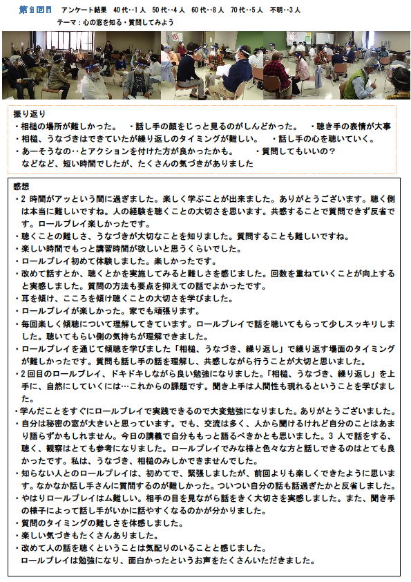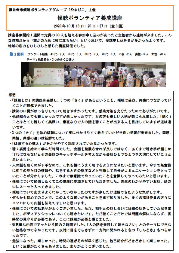 藤井寺市傾聴ボランティアグループ主催「傾聴ボランティア育成講座」 全6回開催